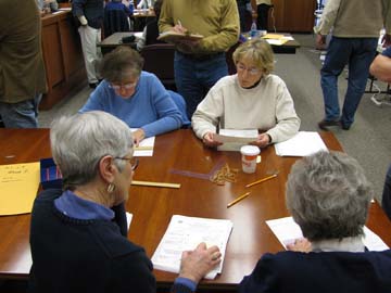 ![]() Election officials read off the ballots. Right, packets of ballots ready to be counted. |