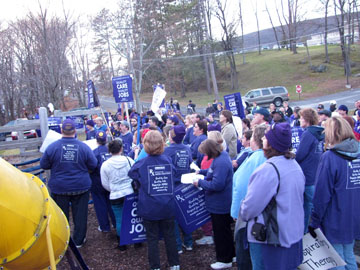 North Adams Regional Hospital and the local chapter of 1199SEIU have been unable to resolve issues over overtime, scheduling and benefits, according to officials from the Service Employee International Union. More than 70 union members from the hospital and affiliated chapters in Boston, Springfield and Pittsfield rallied in the playground across the street from NARH during a break in negotiations.