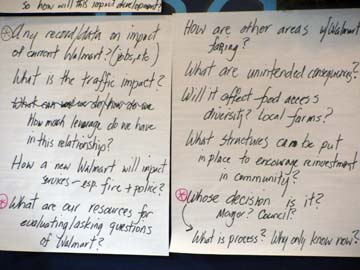 "It's not necessarily that we're against Walmart," said city resident and meeting organizer Sandra Thomas. "It's about what's best for the community."