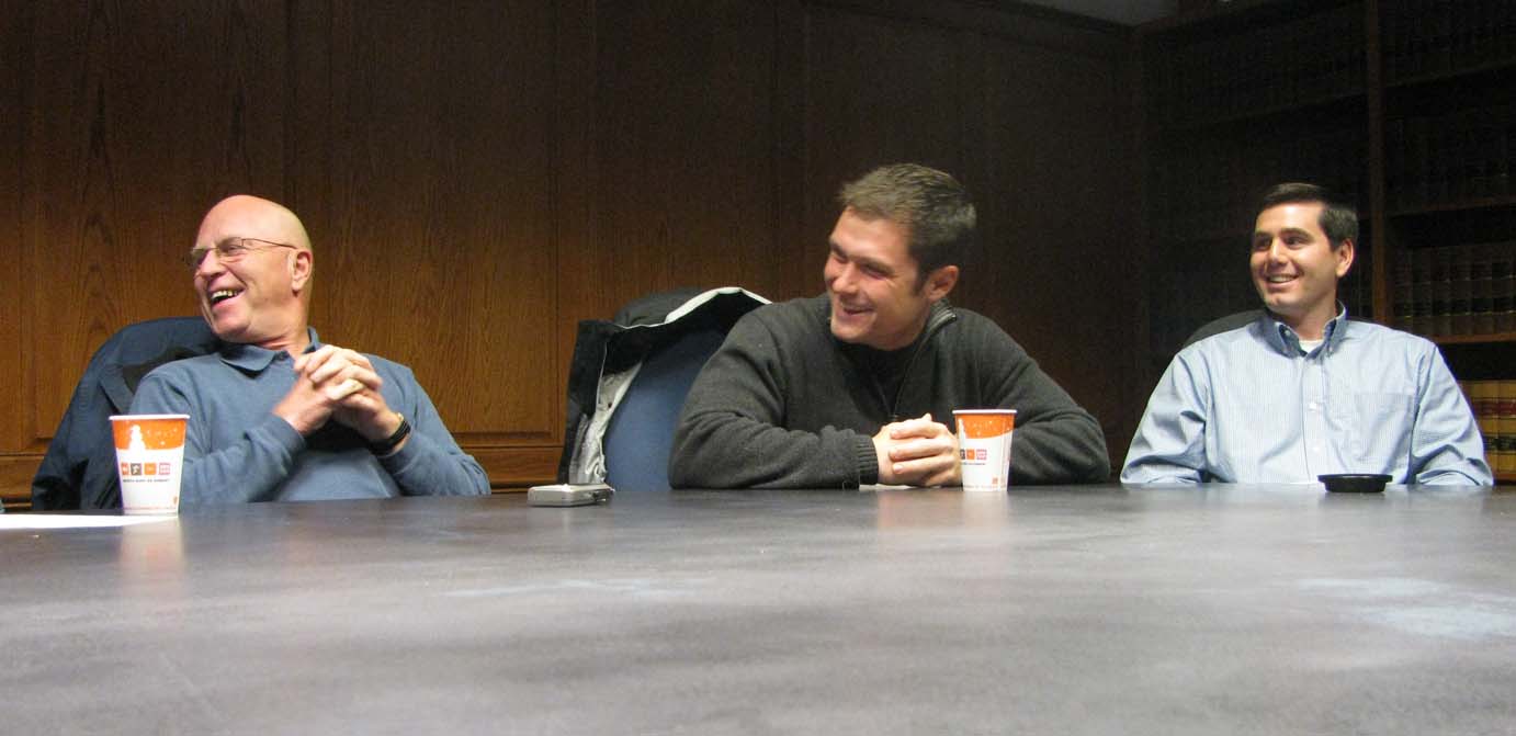![]() Mark Vadnais, left, director of concessions, Bond and General Manager Sean McGrath share a laugh with media. |