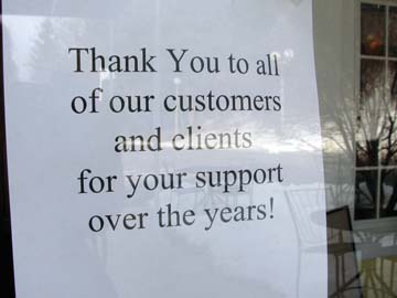 ![]() A sign thanking customers was posted on the front door Tuesday. |
