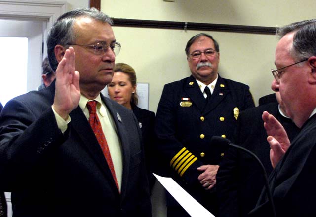 Former Mayor John Barrett III at James Ruberto's swearing in on Monday.