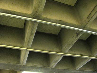 ![]() The heavy 'waffle' pattern concrete ceilings made the college a prime choice for roof installations. |