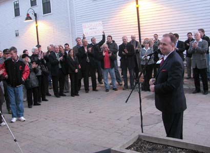 The 44-year-old Adams resident made a splash with a formal announcement at Armory Court, surrounded by about 30 or 40 family members and supporters including several town officials and North Adams City Councilors Michael Boland and Keith Bona. A campaign Web site was launched shortly before.