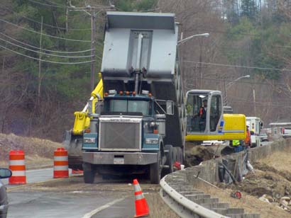 The emergency repairs on River Road began Friday by the state Highway Department.