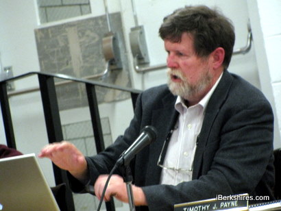 Williamstown School Committee member Adams Filson responds to comments at Mount Greylock. |