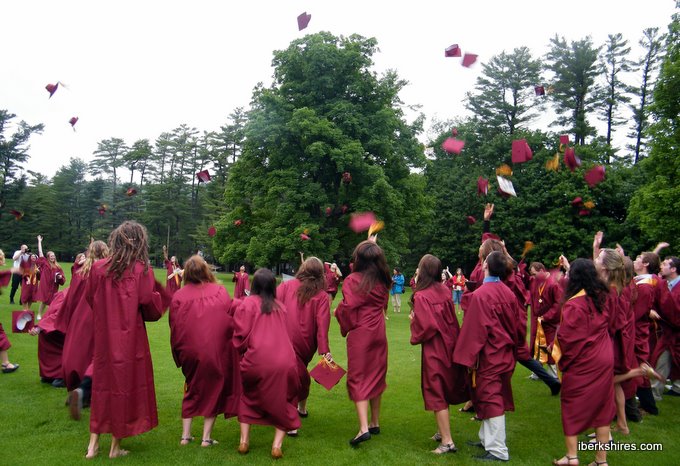 Lenox Memorial High School's class of 2010, consisting of 73 seniors, throw their caps into the air Sunday afternoon at Tanglewood. |
