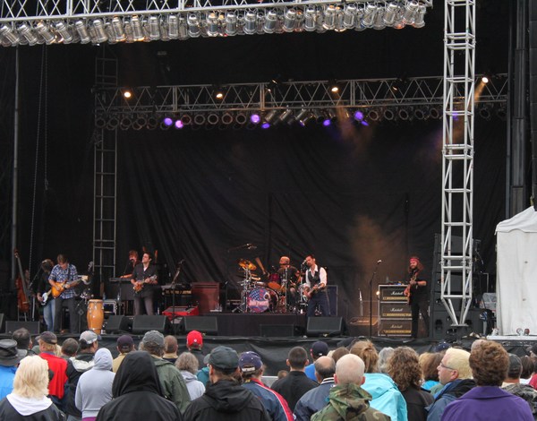 ![]() Drummer Kenny Aronoff takes a breather in the 'cafeteria' trailer after a grueling two-hour concert on Sunday. |