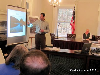 David Cameron of AECOM explains how wetlands would be added to an irrigation pond at the Greylock Glen. |