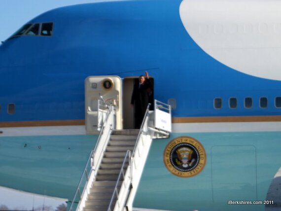 Air Force One glided into Albany International Airport right on time Friday noon to drop off the president.