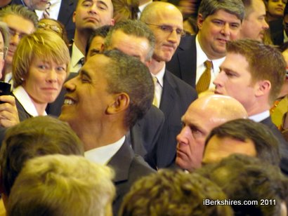 GE's been in the forefront of innovative energy applications, said Obama, referencing the company's massive wind turbine plant and its efforts in advanced battery technology, making it a model for successful businesses. It's also, he said, a model of how innovation and educational partnership can create new opportunities, as shown during his trip to Hudson Valley Community College last year.