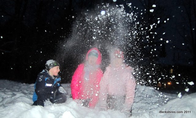 Kids know how to appreciate snow, as shown by Carter Degrenier-Waters, Madison Degrenier-Liebonow and Alyssa Cahill at Mohawk Forest in North Adams.