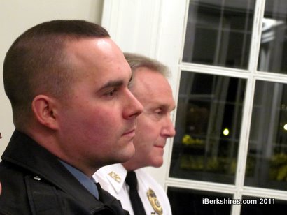 The board voted 3-1 to ratify Curtis Crane, left, as a full-time officer at the request of Police Chief Donald Poirot. |