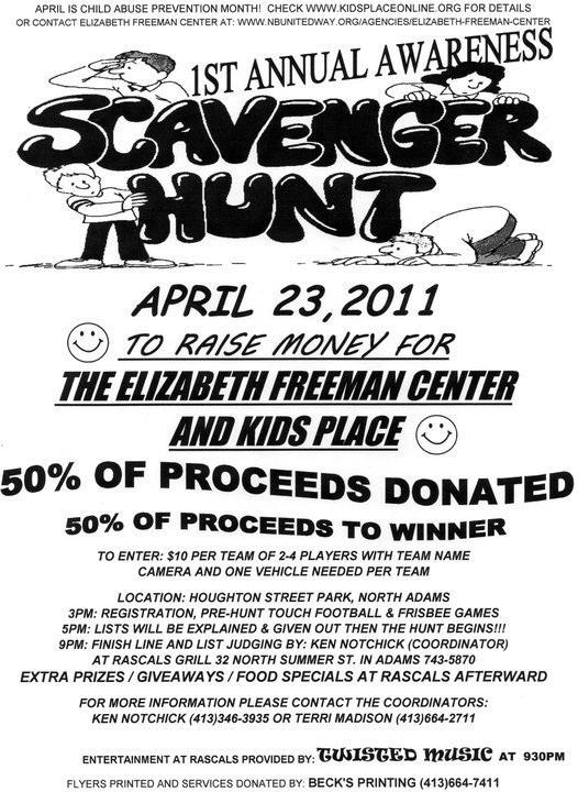 Ken Notchick, of Twisted Music, and Terri Madison are coordinating a scavanger hunt and other activities on Saturday to benefit the Elizabeth Freeman Center in recognition of Child Abuse Awareness Month.