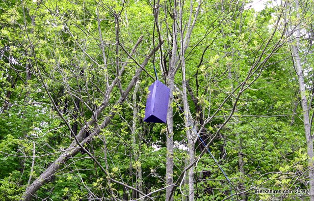 Some 700 purple traps have been set out in the four counties. Anyone who thinks they have seen evidence of ash borers should call USDA at 1-866-322-4512 or report it to the state Department of Agricultural Resources here.