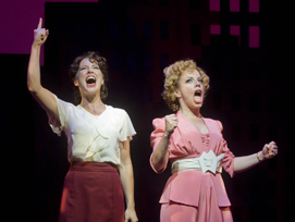 The work of choreographers is a major component of any musical's success, and Joshua Bergasse deserves applause for his brilliant work, and for sticking close to the conventions of the era from which this musical comes. He did not have a large contingent of dancers to work with, just five women and six men, plus a cast willing to try anything. So he supplemented the dancing with gorgeous costumes and large movements, easily filling the stage with color and motion. Bergasse had many surprises in the first act, but he saved his most spectacular effects for the second act as the show built to a climax.