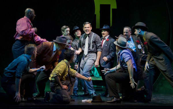 PITTSFIELD, Mass. — This is the one, the classic that Barrington Stage Company was born to do. "Guys and Dolls" succeeds where musicals and plays about nobler characters fall short. This down-to-earth show was first penned in 1950 and took Broadway by storm. Its magical ingredients are the perfect concoction of words, music, dance and story. It all begins with a bet, and from there on we are off to the races, so to speak.The show focuses on a quartet of characters. Nathan Detroit (Michael Thomas Holmes) is trying to stay a step ahead of the police and find a place to hold his craps game. He needs front money and bets another gambler, Sky Masterson (Matthew Risch), that he can't persuade Save-A-Soul missionary sister Sarah Brown (Morgan James) to go with him to Cuba. Meanwhile, Nathan is doing his best to stay outside the matrimonial clutches of his long-suffering fiancée, Miss Adelaide (Leslie Kritzer).