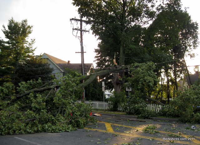 ![]() A tree blocked Wahconah Street near the Pecks Road intersection and left the area without power. |