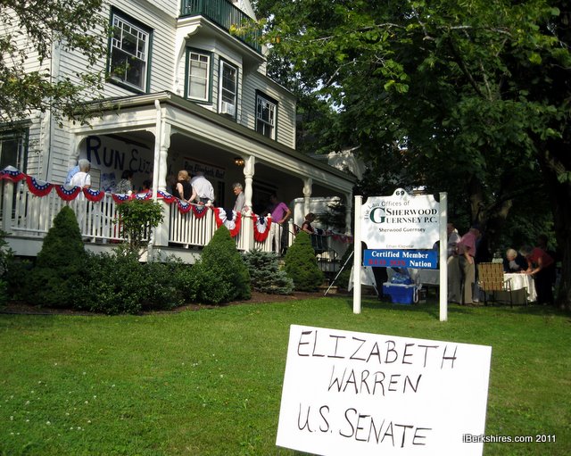 ![]() The Berkshire Democrats decorated the law office with mock signs, buttons and large banners encouraging Warren to run. |
