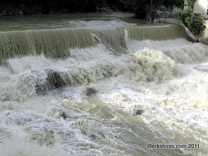 But as fast as the water rose, it fell. River Street was flooded at around noon but just wet a few hours later. Muddy water cascaded over the Eclipse Dam and the Hoosic River overflowed its banks south to Adams and west toward Williamstown.