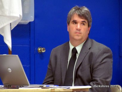 Michael Canales, seen here at last year's Clarksburg town meeting, is a city native and resident. He's been town adminstrator for 11 years. |