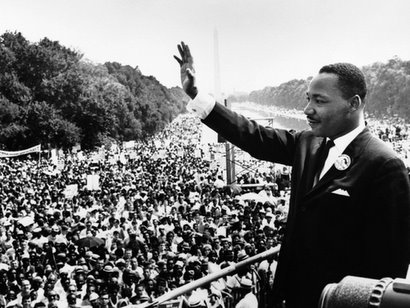 King, a Baptist minister, led the Civil Rights Movement in the 1960s by espousing nonviolent protest. His best-known address, the "I Have a Dream" speech, was given in front of the Lincoln Memorial in Washington, D.C., to a crowd of 250,000 who participated in the March on Washington. The 1964 Nobel Prize winner was assassinated on April 4, 1968.