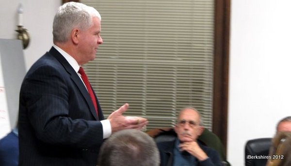The telecommunications company, however, has no other option. The location — near the school's football field — was chosen almost two years ago by the School Committee. The company signed a contract with the school to put the tower there but when residents' concerns grew, the School Committee urged AT&T and developer Florida Tower Partners to look into moving the tower to Peter Phelps' land on Oblong Road, which they did. The company pulled out of that location because of an endangered species regulations — though Phelps argued the language of those regulations Thursday — and returned to the school.