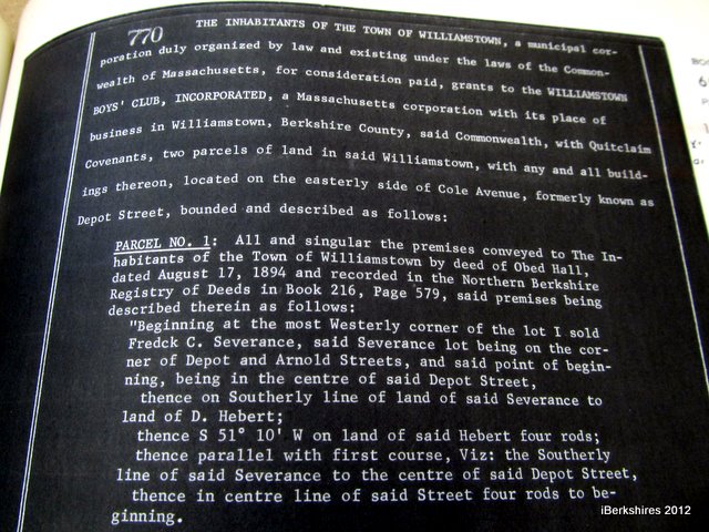The town gave the gave the building and land to the Youth Center, which was then call the Williamstown Boys Club, in 1966. The club has been using the former school since 1934, when the building it was using on Spring Street was torn down to make way for the post office.