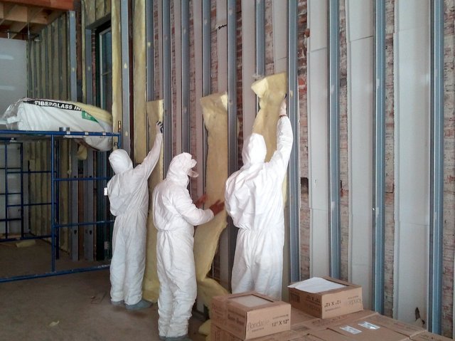 The completed work includes plumbing, insulation and vapor barriers in all of the first floor and preparation for the completion of the apartment.