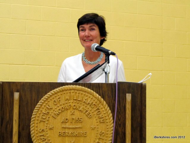 Town Moderator Mark Gold read the certificate that recapped Costley's history. Her local involvement began in the early 1990s, when she was a host family for both Williams College's Center for Development Economics program and Mount Greylock Regional High School's A Better Chance program. She later became the chairman of the Greylock ABC program.
