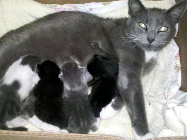 One of the captured cats gave birth to four kittens and another is expected to give birth soon. |