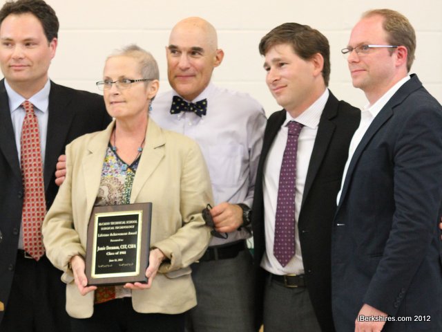 He had a role model for them: Jamie Drennan of Pittsfield, a surgical technician at Berkshire Medical Center and 1981 graduate of the McCann program. Sprague, with four surgical colleagues Drs. Leonard Cohen, Jonah Marshall, Michael DiSiena and Kevin Mitts, presented Drennan with a lifetime achievement plaque for her dedication and professionalism.