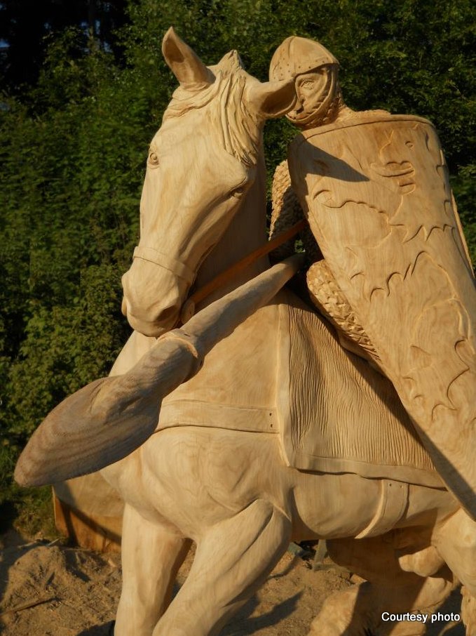 Packie and his teammates defeated teams of wood sculptors from around the world in the five-day competition with their life-size figure of a medieval knight on horseback.