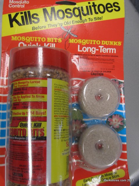 The town had voted in 2005 to discontinue the use of pesticides over health concerns. Wells said best method, according to the Centers for Disease Control, was larvicide . Residents needing larvicide "doughnuts" should contact the town administrator. They were also reminded to avoid peak mosquito hours, use repellent, drain standing water and wear long sleeves and pants when possible.