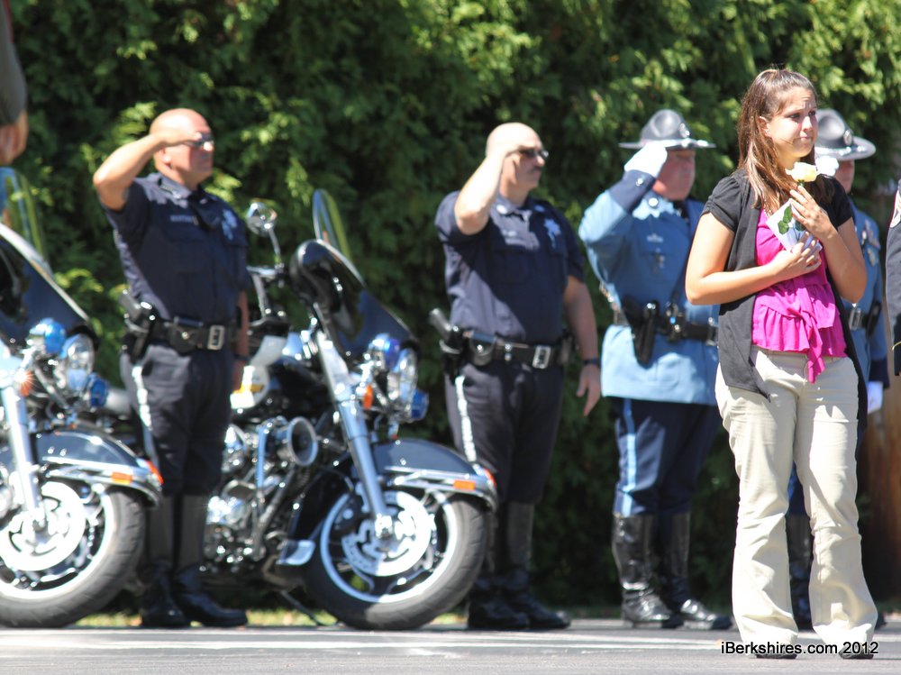 The hearse was escorted by the Berkshire County sheriff's department, a state police and North Adams police cruisers, two vehicles with immediate family members and motorcyclists including members of the Patriot Guard Riders, a group dedicated to ensuring deceased members of the armed forces are treated with respect, and American Legion Riders.