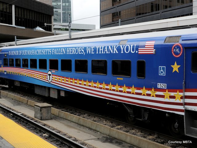 The coach was unveiled at Boston's South Station last May as a rolling memorial containing the names of the more than 130 Massachusetts members of the armed forces who have lost their lives in Iraq or Afghanistan.