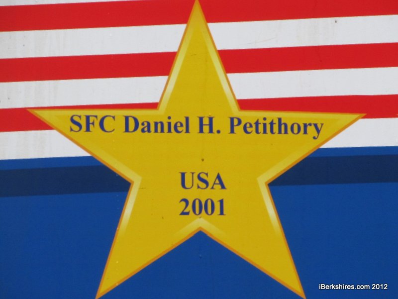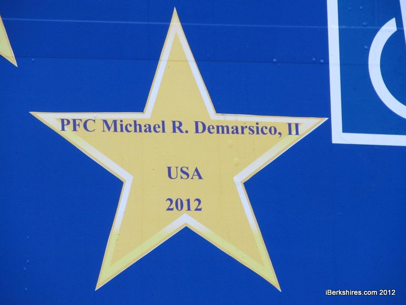 The names of all Baystaters killed in action labeled with rank and year are featured on gold stars on the sides of car — Afghanistan (Operation Enduring Freedom) on one side, and Iraq (Operation Iraqi Freedom) on the other.