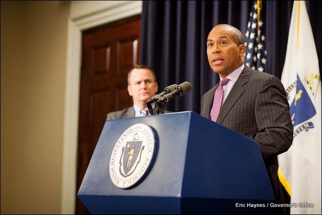 ![]() Gov. Deval Patrick speaks about storm preparations at a press conference at the State House this afternoon. |