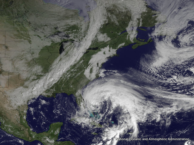![]() Hurricane Sandy is moving north along the coast of Florida in this satellite image taken Friday afternoon. |