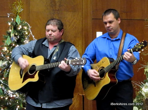 Randy Cormier, left, and Brian Benlien perform 'Christmas in Heaven' at the Berkshire Museum on Sunday. They are donating any proceeds from the song to theSandy Hook victims' families. |