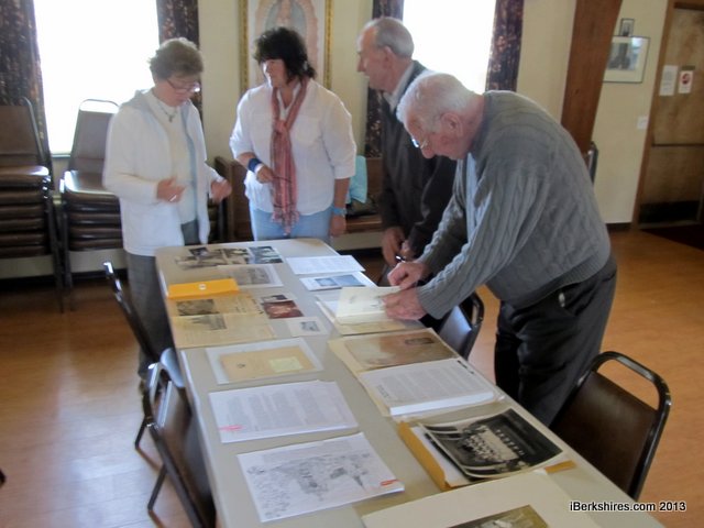 Parishioners spent time looking through old photos, newspaper stories and programs throughout the parish's history on Thursday. |