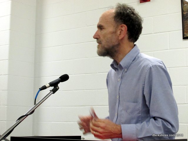 Williams College spokesman James Kolesar announces a $450,000 gift to Mount Greylock Regional High School on Tuesday evening. |