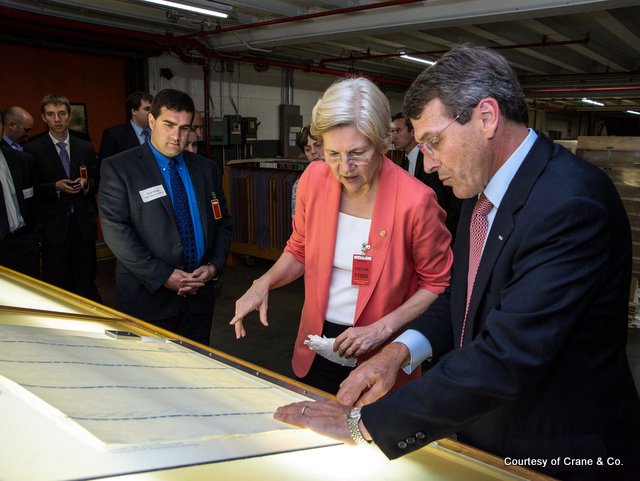 Tags: coins, Crane & Co., currency, papermaking, senator, state officials, Warren,