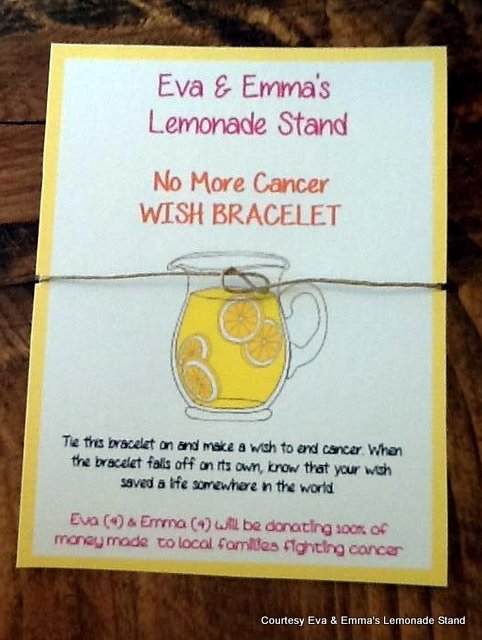 Four-year-old twins Eva and Emma Msibi lemonade stand has taken off as fundraising vehicle to help families dealing with cancer. Less than a week after setting up their lemonade stand, the project's come to include a wish bracelet, too. |