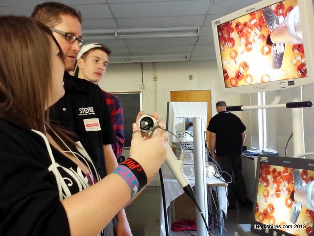 "You could pretend that one of the beads is a tumor in the colon," said Gary Quadrozzi, a registered nurse and robotics coordinator for Berkshire Medical Center. "Those beads are teeny tiny, but when you see things big like that you can do a better job of whatever it is you need to do."