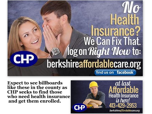 CHP isn't the only organization helping enrollment. Ecu-Health Care in North County and Berkshire Health Systems' Advocacy for Access program have both ramped up enrollment activities. All three entities were designated access providers last fall and provided with federal funding to support enrollment activities.