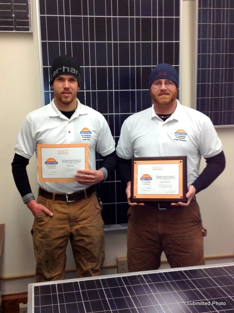 Bryan Waryjasz of Clarksburg and Adam Rich of Pittsfield both achieved the highest solar certification credential.