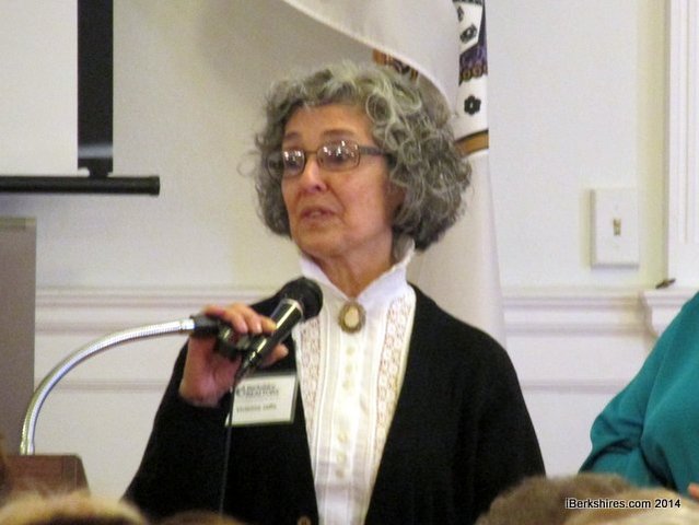 Childers, the guest lecturer at the annual Anthony birthday celebration held in the GAR Memorial Hall in the Adams Free Library, spoke on "Social Stitches: Women's Work — Women's Issues."