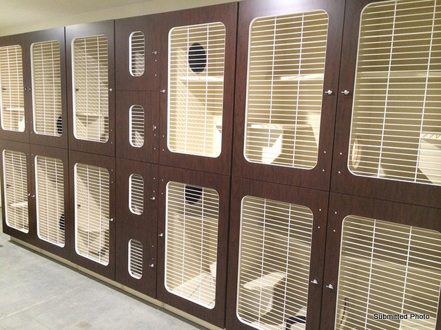 "They're from a company called the Mason Co. They're all glass doors with benches in the back. ... And it's the same for our cat units. They're really high-end luxury cat condos ... with a play area. Just like the dogs get to go outside and play in the back yard, the cats get an area where they can play.