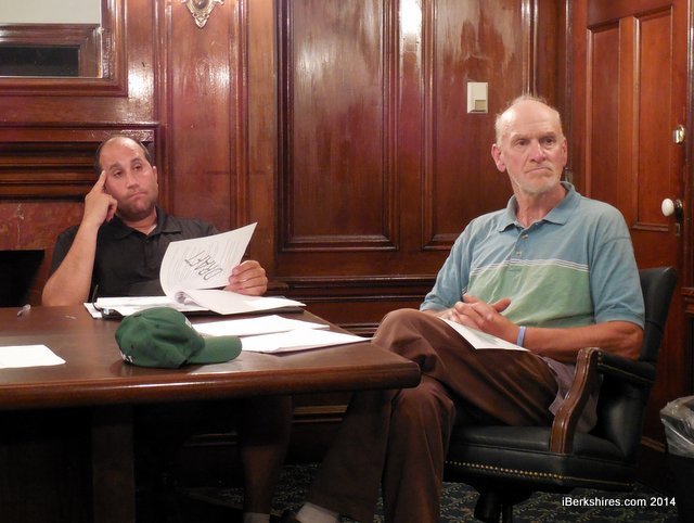 Selectmen Jeffrey Snoonian, left, and Joseph Nowak listen to BRPC's Tom Matuszko talk about National Forest opportunities.